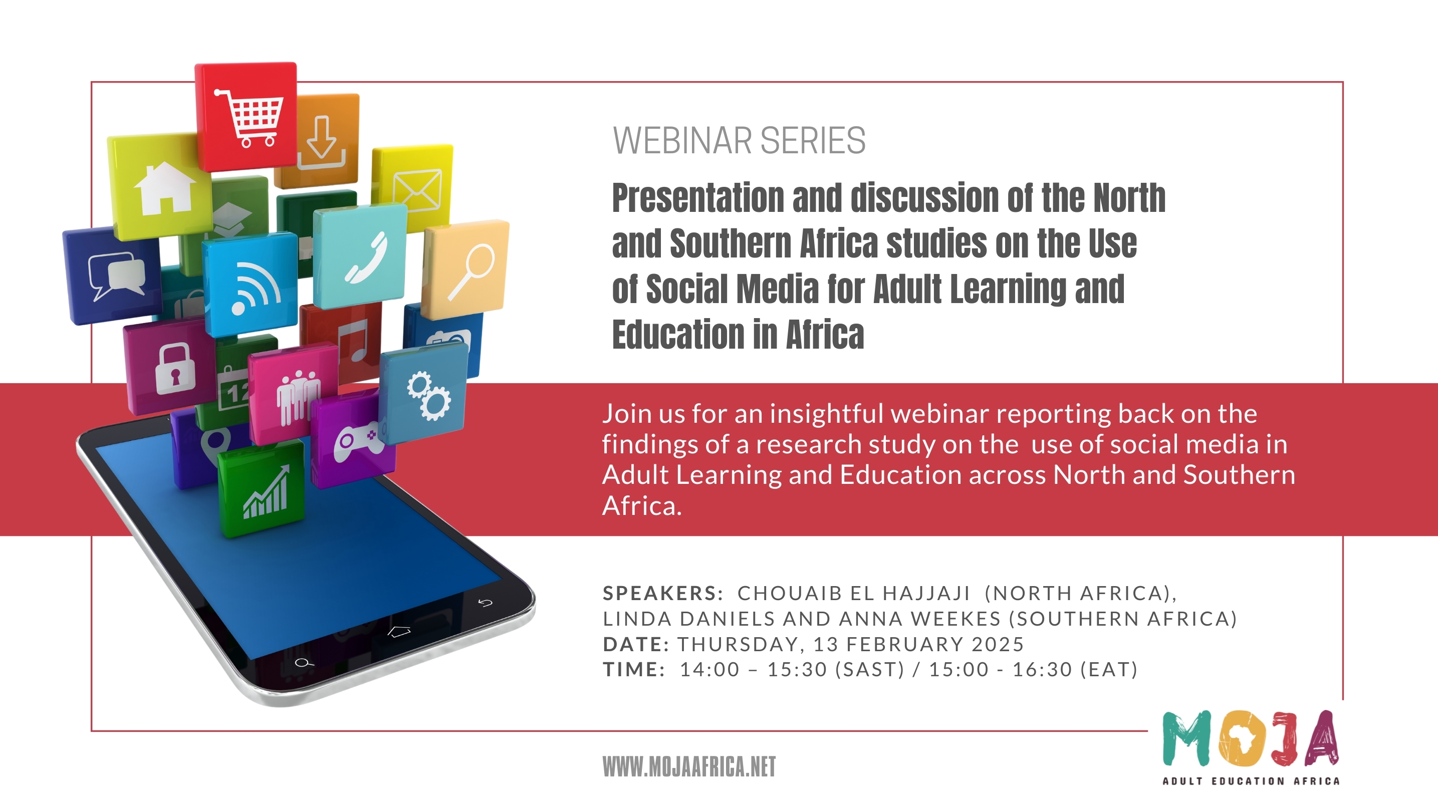 Join us for an insightful webinar reporting back on the findings of a research study on the use of social media in Adult Learning and Education across North and Southern Africa.